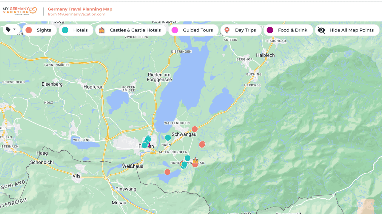 It’s part of our Germany Travel Planner, and it’s your Germany travel planning BFF! Using our custom interactive planning map you’ll be able to quickly see the best sights, castles, hotels, day trips, and more – along with our photos and up-to-date insider tips. Seeing where these things are in relation to each other makes it much easier to plan your overall itinerary, as well as each day of your trip. If you don’t yet have it, click here to get access.