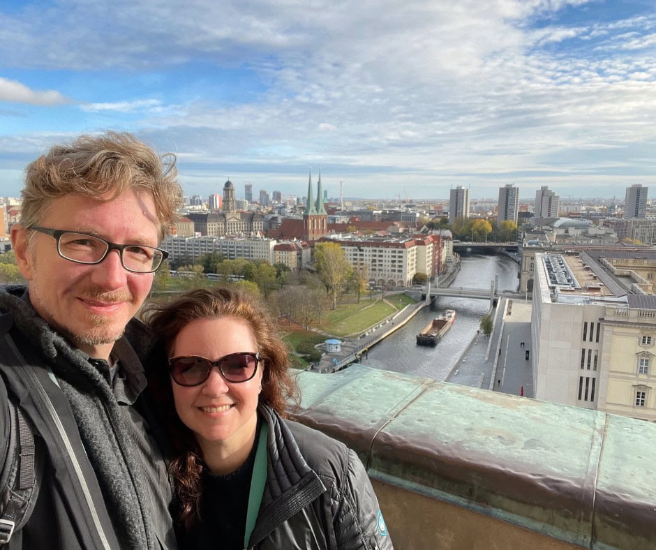 Aaron lived in Spain but has now been traveling to Germany for nearly 35 years (25 of them with Cate). He has an MS in Information Science, used to work in higher ed IT, and is a pro at driving on the Autobahn and following conversations in German, even though he doesn’t speak German!