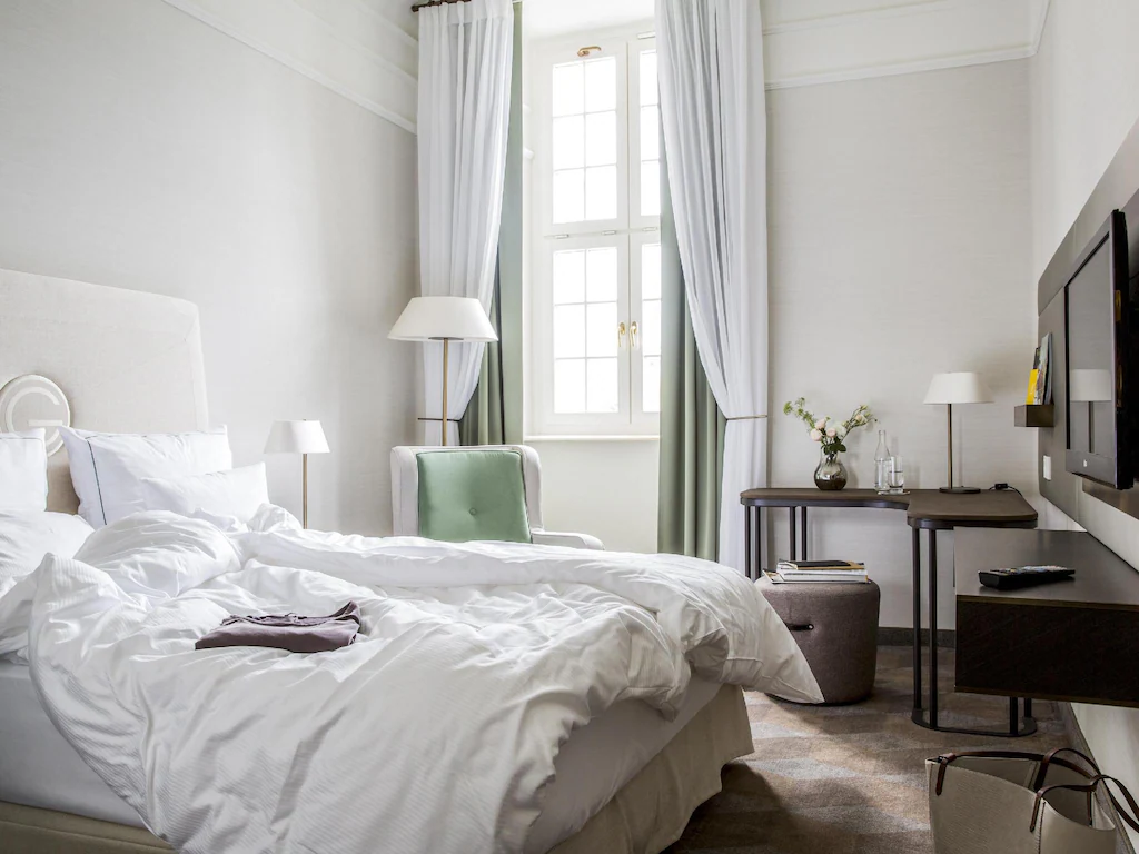 SUMMARY: This modern hotel in an historic building in a prime Old Town location features large, quiet, light-filled rooms with an ensuite bathroom and comfortable beds. Other amenities include an upscale Swiss/German restaurant, a rooftop terrace, and even a while a medieval-era cellar that has a spa and a fitness room.